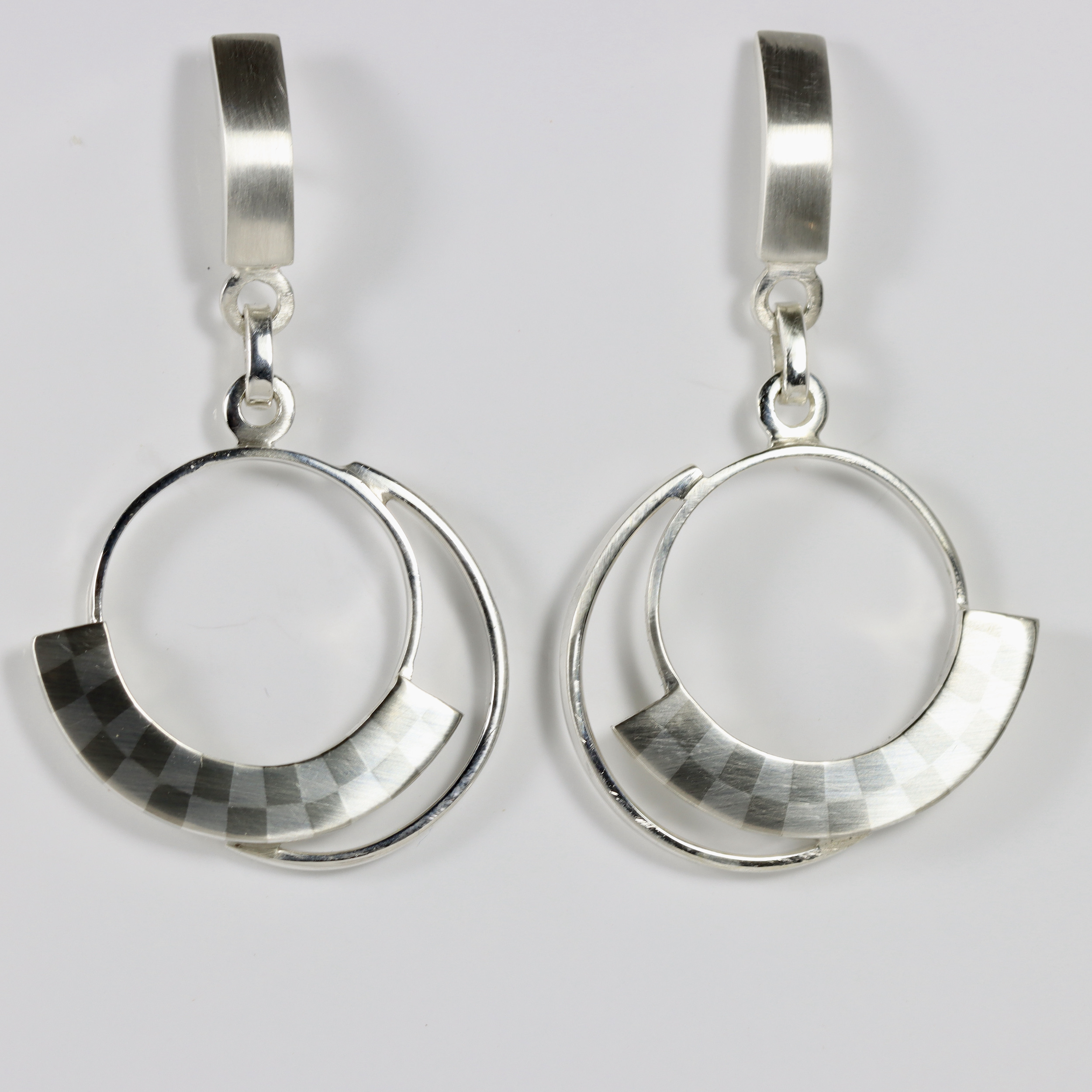 Checkerboard-patterned earrings. Hand-fabricated in sterling silver.