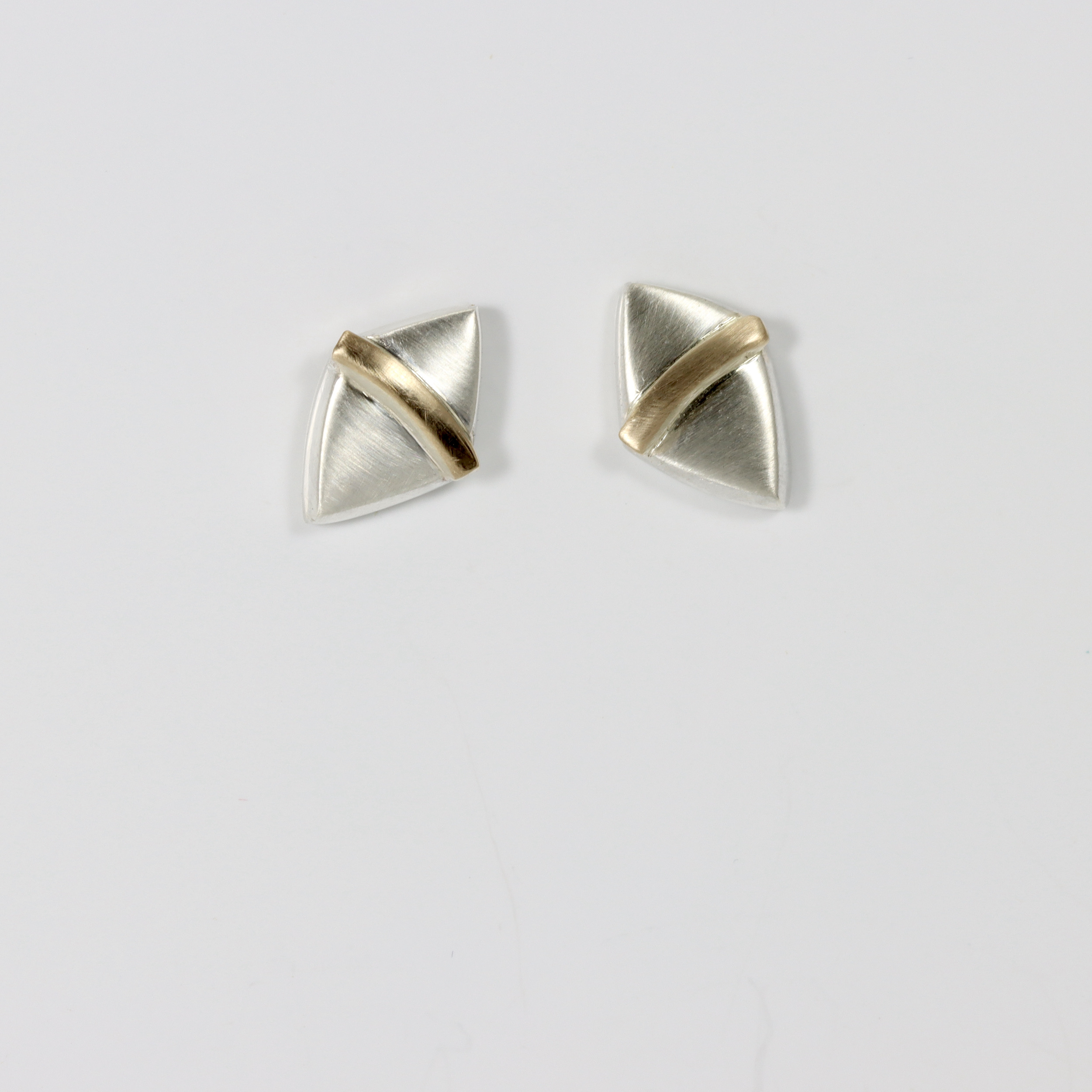 Stud in sterling silver and 14k gold. Trapezoid shape.